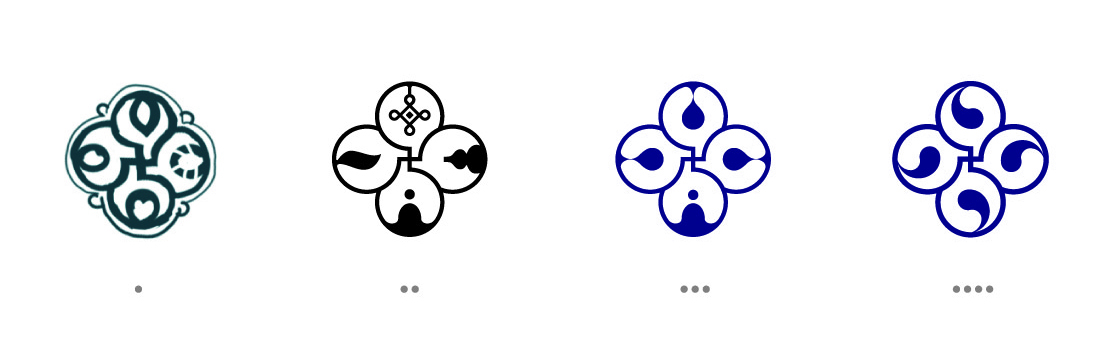 但圖形較為繁復(fù)與表象,于是對(duì)圖形所要表達(dá)的東西做減法——分處四個(gè)方位的圖形簡(jiǎn)化為水滴,象征四水歸堂,四方來(lái)財(cái),天人合一。