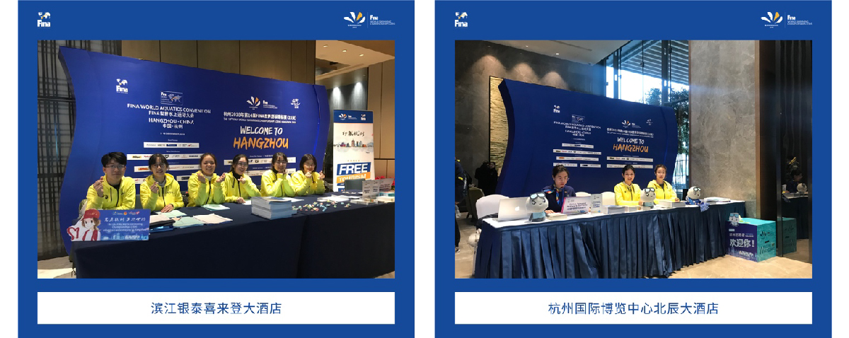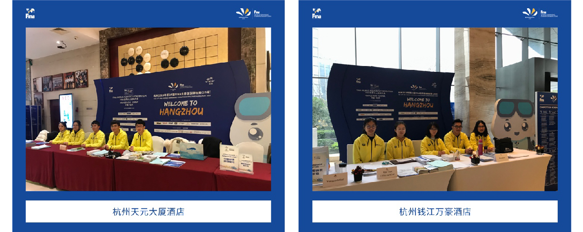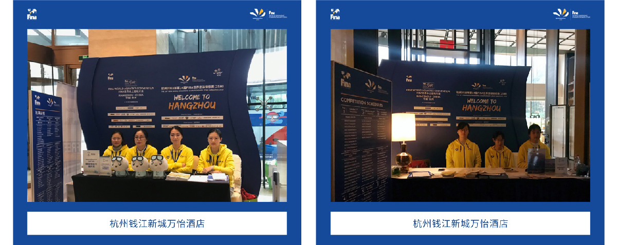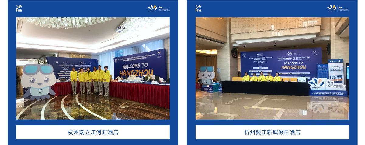 就接待和志愿者組來說,10個酒店以及機場、車站、中轉(zhuǎn)中心每個區(qū)域的面積、裝飾要求以及物料數(shù)量都不相同,且給予的時間十分緊張,從規(guī)劃設(shè)計到落地實施為10天,對于擇道觀行來說,這無疑是個很大的挑戰(zhàn),最后在組委會的大力支持與協(xié)調(diào)下,擇道觀行世游賽項目組成員在第五屆國際泳聯(lián)世界游泳大會開會之前順利完成所有落地實施工作。
