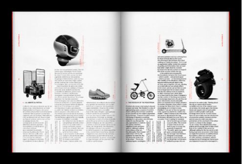 上下分割結(jié)構(gòu)在畫冊中是比較常用的結(jié)構(gòu)。既是整個(gè)版面分成上下兩部分,在上半部或下半部配置圖片(可以是單幅或多幅)或者大色塊,另一部分則配置文字。 圖片部分感性而有活力,而文字則理性而靜止。