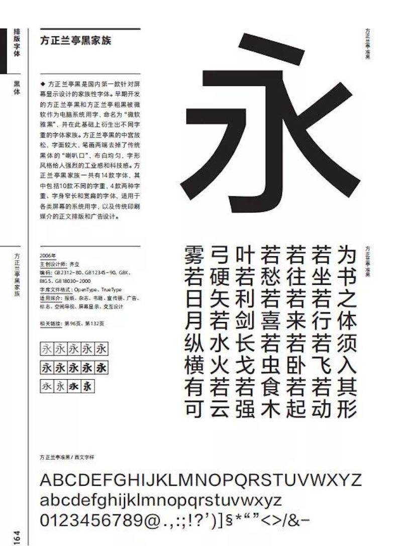 還有中國第一款針對屏幕顯示設(shè)計的方正蘭亭黑,字體的中宮放松,字面較大,筆畫兩端去掉了傳統(tǒng)黑體的“喇叭口”,布白均勻,字形風(fēng)格給人強烈的工業(yè)感和科技感,其美觀且醒目的設(shè)計受到國內(nèi)外使用者的喜愛。