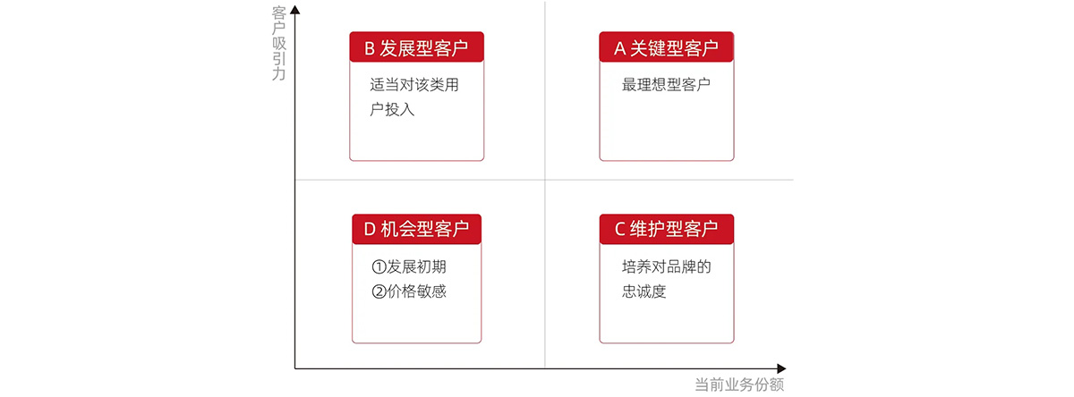 關(guān)鍵型客戶、發(fā)展型客戶、維護型客戶以及