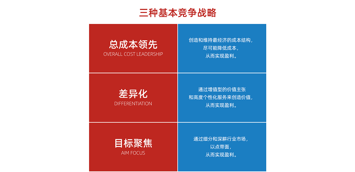 仔細(xì)研究以上三種競(jìng)爭(zhēng)戰(zhàn)略,筆者發(fā)現(xiàn),其核心價(jià)值就是差異化,因?yàn)槠髽I(yè)在實(shí)現(xiàn)目標(biāo)聚焦、細(xì)分市場(chǎng)時(shí)通常只有兩種選擇:要么便宜,要么不一樣。