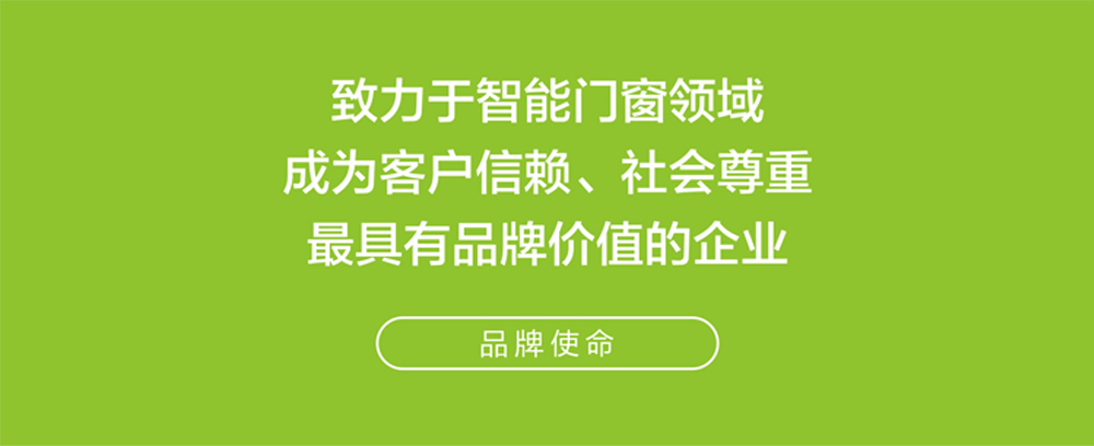 品牌使命:致力于智能門窗領(lǐng)域,成為客戶信賴、社會尊重、最具有品牌價值的企業(yè)。